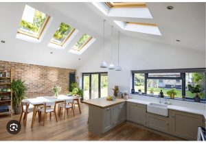A feeling of space / view / set back from road Lots of daylight / large windows High ceilings Parking Garden